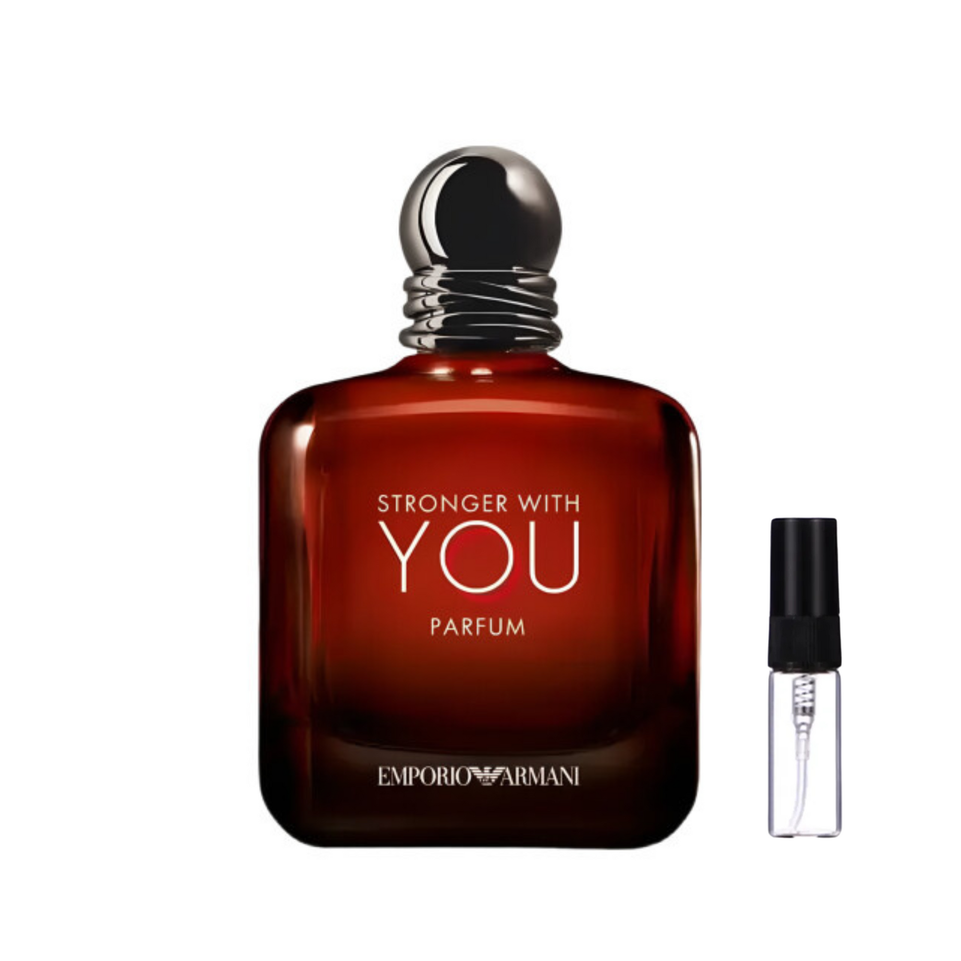 Stronger With You من جورجيو أرماني هو عطر شرقي حار يتميز بمزيج من النعناع والفلفل الوردي في البداية، مع لمسات من القرفة والبندق في القلب، مما يضيف عمقًا حلوًا ودافئًا. تنتهي رائحته بنوتات من الفانيليا والمسك، مما يمنحه طابعًا دافئًا وحسيًا. يعد هذا العطر قويًا وجذابًا، مثاليًا للأمسيات الباردة والمناسبات الخاصة.