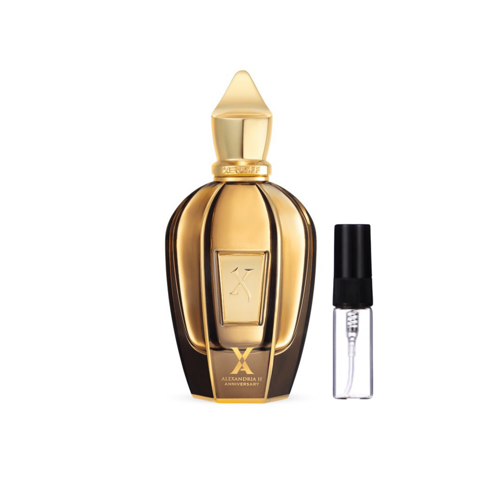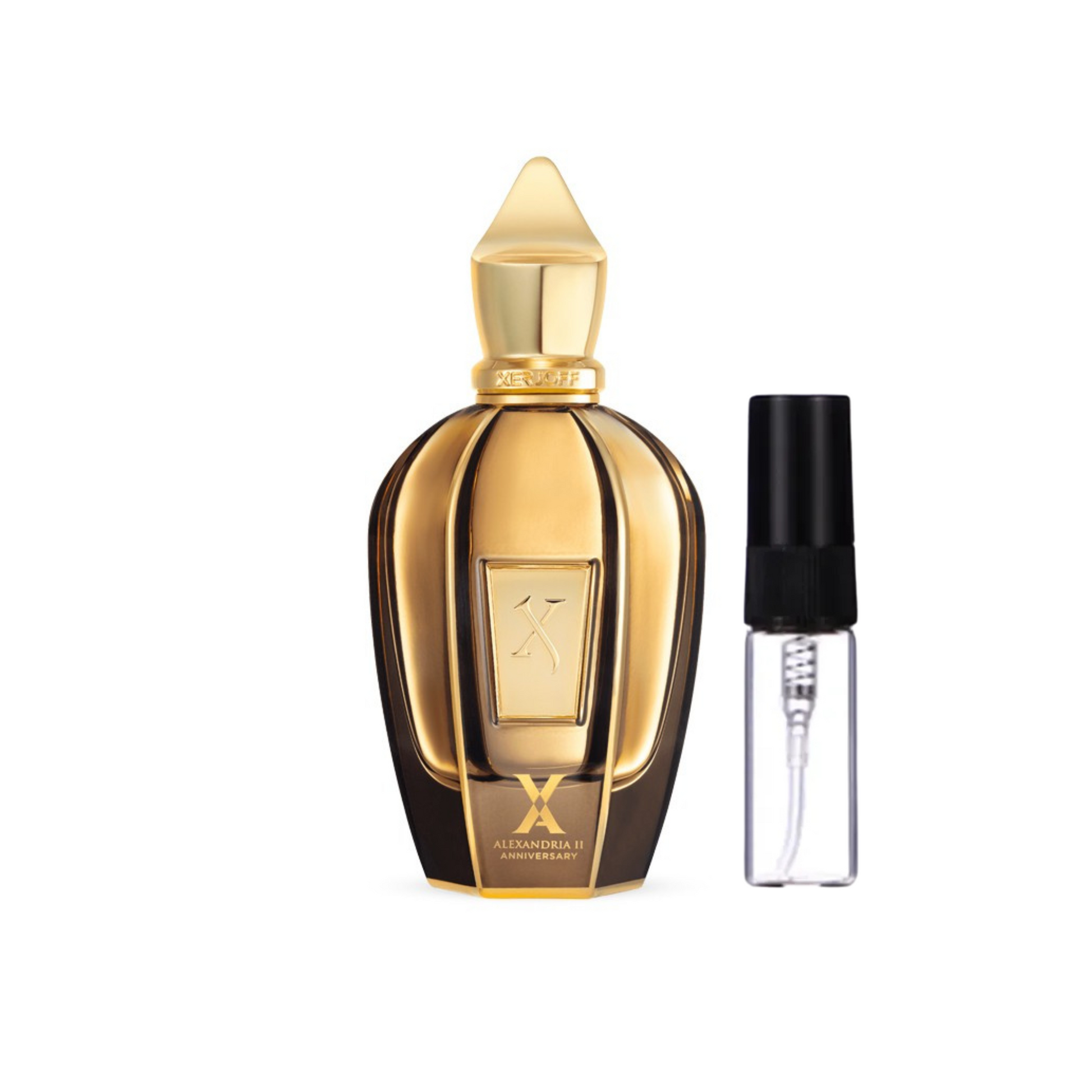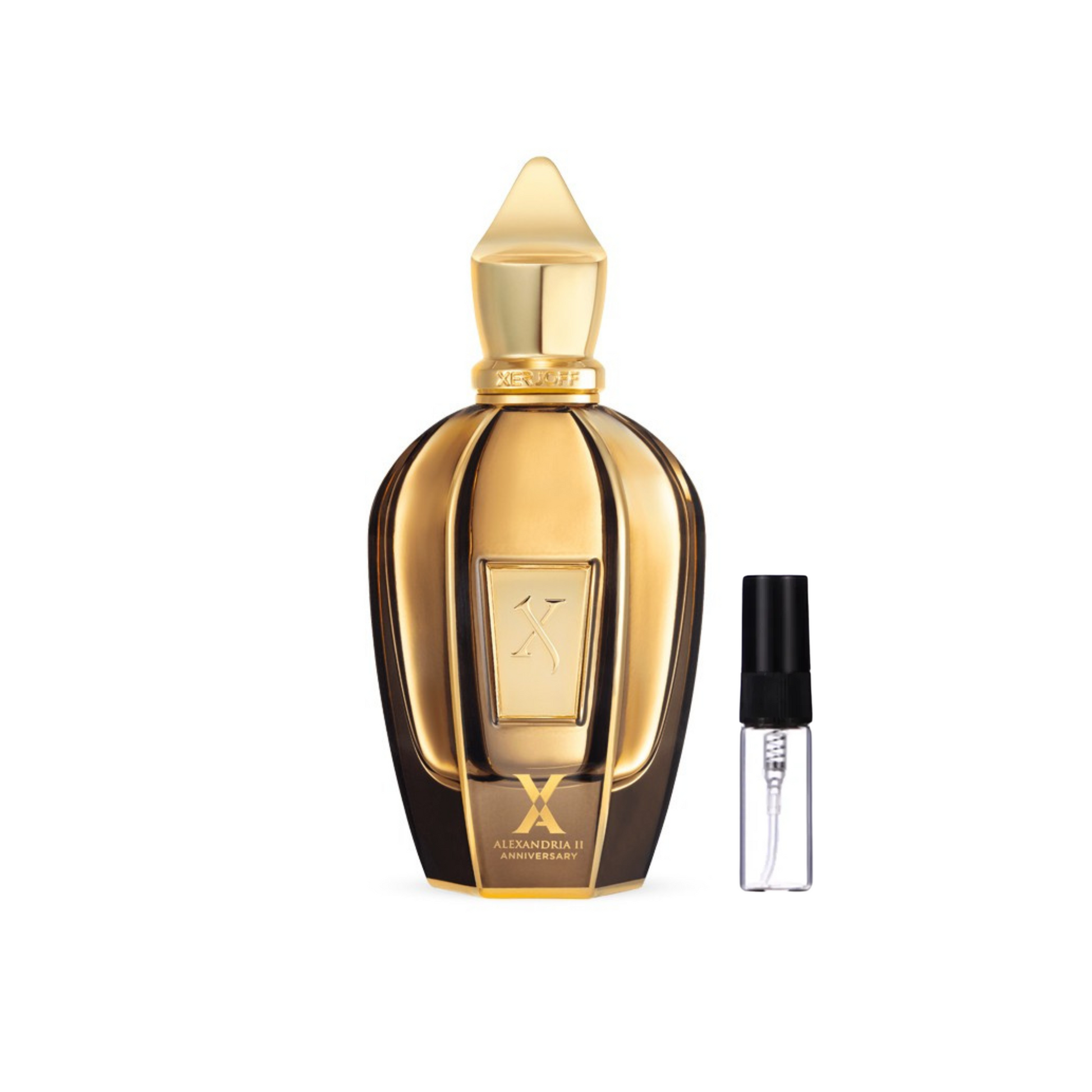 عطر "ألكسندريا II أنيفرساري" من Xerjoff هو إصدار محدود تم إطلاقه في عام 2024 للاحتفال بمرور عام على إصدار عطر "ألكسندريا II". يجمع هذا العطر بين مكونات فاخرة، حيث تبدأ النفحات العليا برائحة اللافندر، الورد البلغاري، الهيل، والكمون. تتوسطه نفحات من العود، العنبر، زيت السيبريول، الزباد، السوسن، الشيح، النعناع، والمريمية. أما القاعدة فتتميز برائحة الفانيليا، خشب الصندل الأسترالي، والمسك. يهدف هذا العطر إلى تقديم تجربة عطرية غنية ومعقدة تعكس روح العطر الأصلي مع لمسة عصرية.